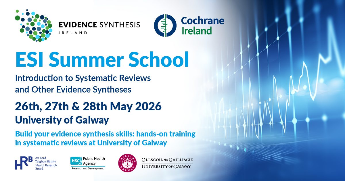 Join us for our Summer School at the University of Galway from May 26th to 28th, 2026, for a hands-on three-day summer school on “Introduction to Systematic Reviews and other Evidence Synthesis.” This course is tailored for beginners and those looking to refresh their skills. While focusing on health, the methods taught apply in multiple fields. Through interactive lectures, discussions, and practical exercises, you’ll learn how to conduct systematic reviews and evidence syntheses that can influence research and policy decisions.